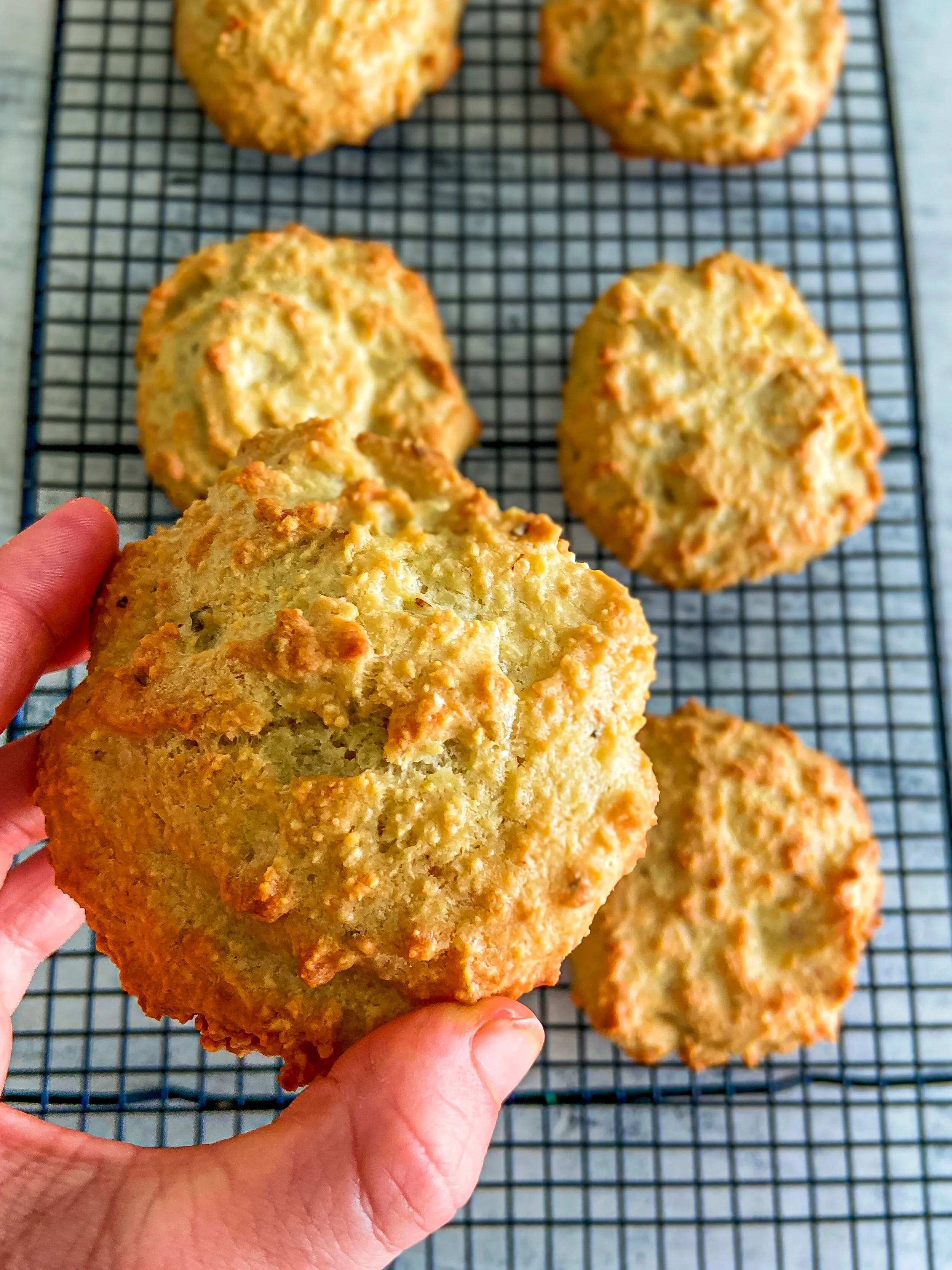 Look no further for the homemade food that doubles as a side dish or focal point of an on-the-go breakfast! The use of olive oil gives these such a classy, buttery, melt-in-your-mouth type of taste and texture. They give off such a warm + cozy vibe, with cheesiness in the air. Unfortunately, lots of pre-packaged mixes are loaded with inflammatory oils and are ultra-processed. I chose to make it where it does not get much simpler than this, with just seven ingredients involved. Smear some cream cheese on top or have as an afternoon snack, no judgement here; they will be gone before you know it!
