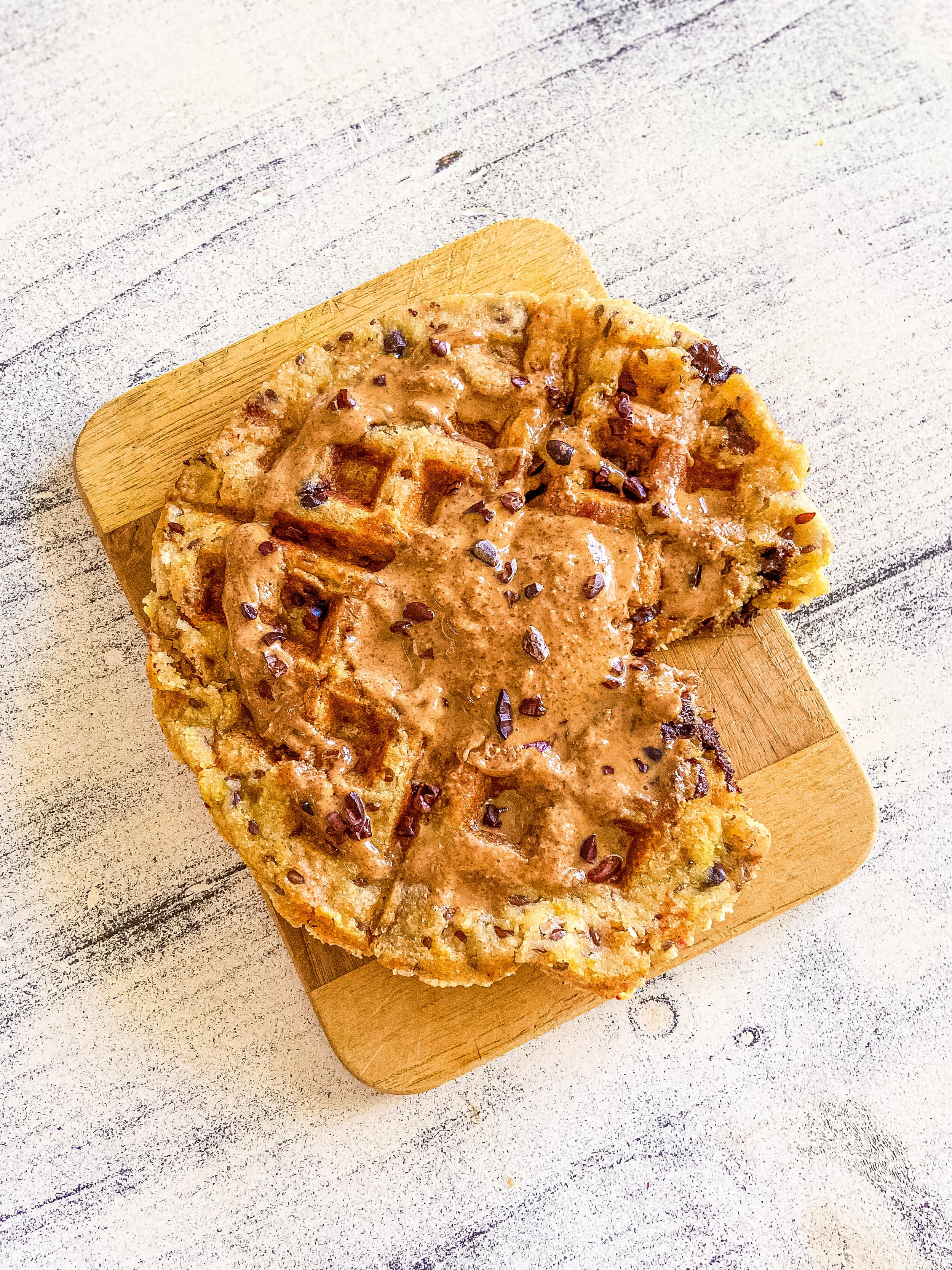 I’ll admit, I’m more of a pancake gal, but I set out to grow my relationship with waffles. The result: perfectly crisp edges and the fluffiest interior, which won me over. It was love at first bite! You, your family, and your friends will instantly fall in love with this classic, chocolate chip breakfast or brunch. Loading on favorite toppings, like creamy almond butter and crunchy cacao nibs, is warmly welcomed here. The best part: this is vegan AND gluten, grain, dairy, and refined-sugar free!
