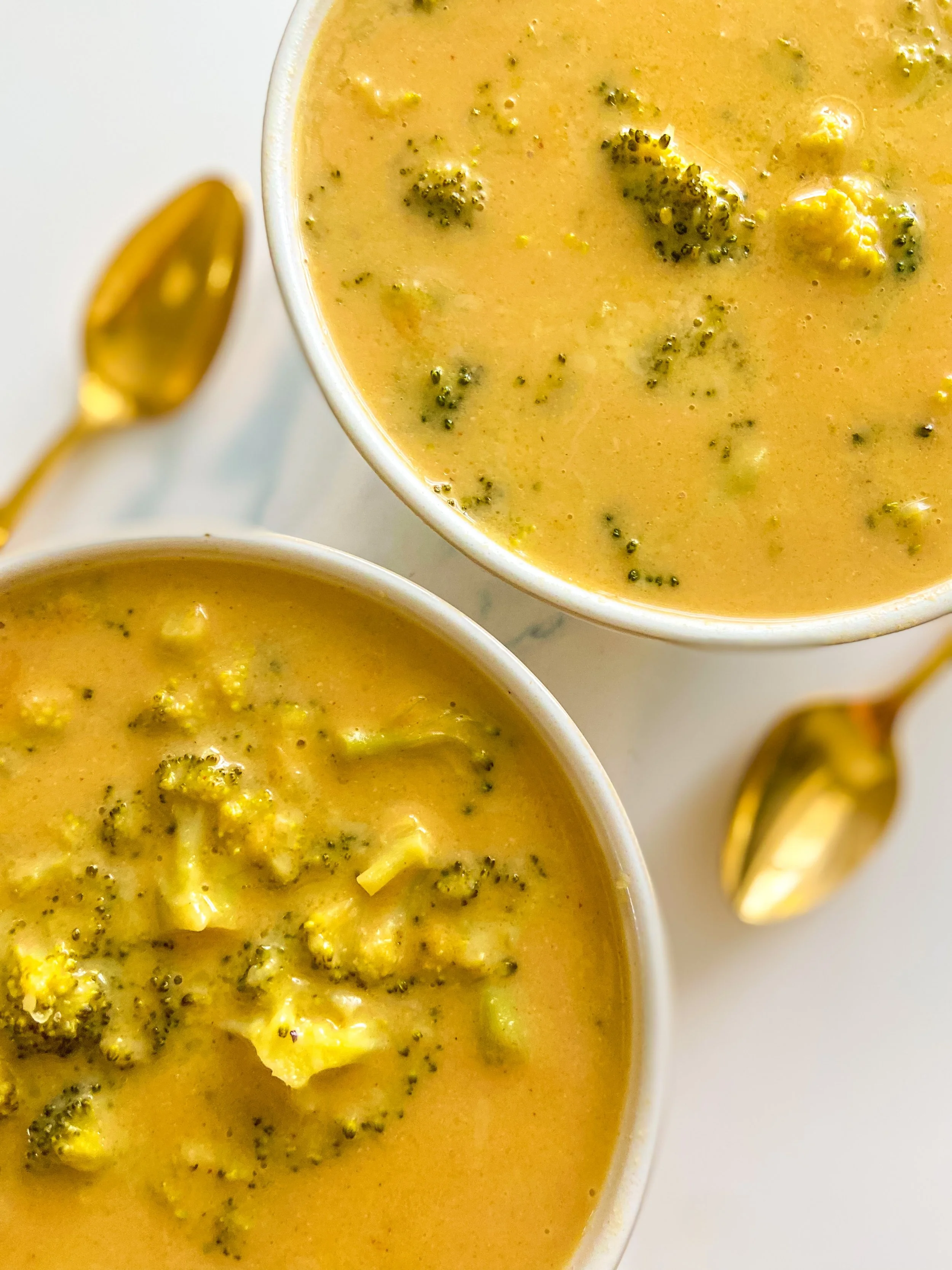 Broccoli cheddar is the kind of soup I would always order out growing up! I decided to make a nostalgic, healthier version so we can all have this from the comfort of home. This is irresistibly smooth, hearty, and purely magical when a slice of toast smeared with ghee is dipped in a bowl of it. In under 30 minutes and in just one pot, wholesome ingredients come together to create a warm and savory dish, allowing more time for enjoying and less for doing the dishes!