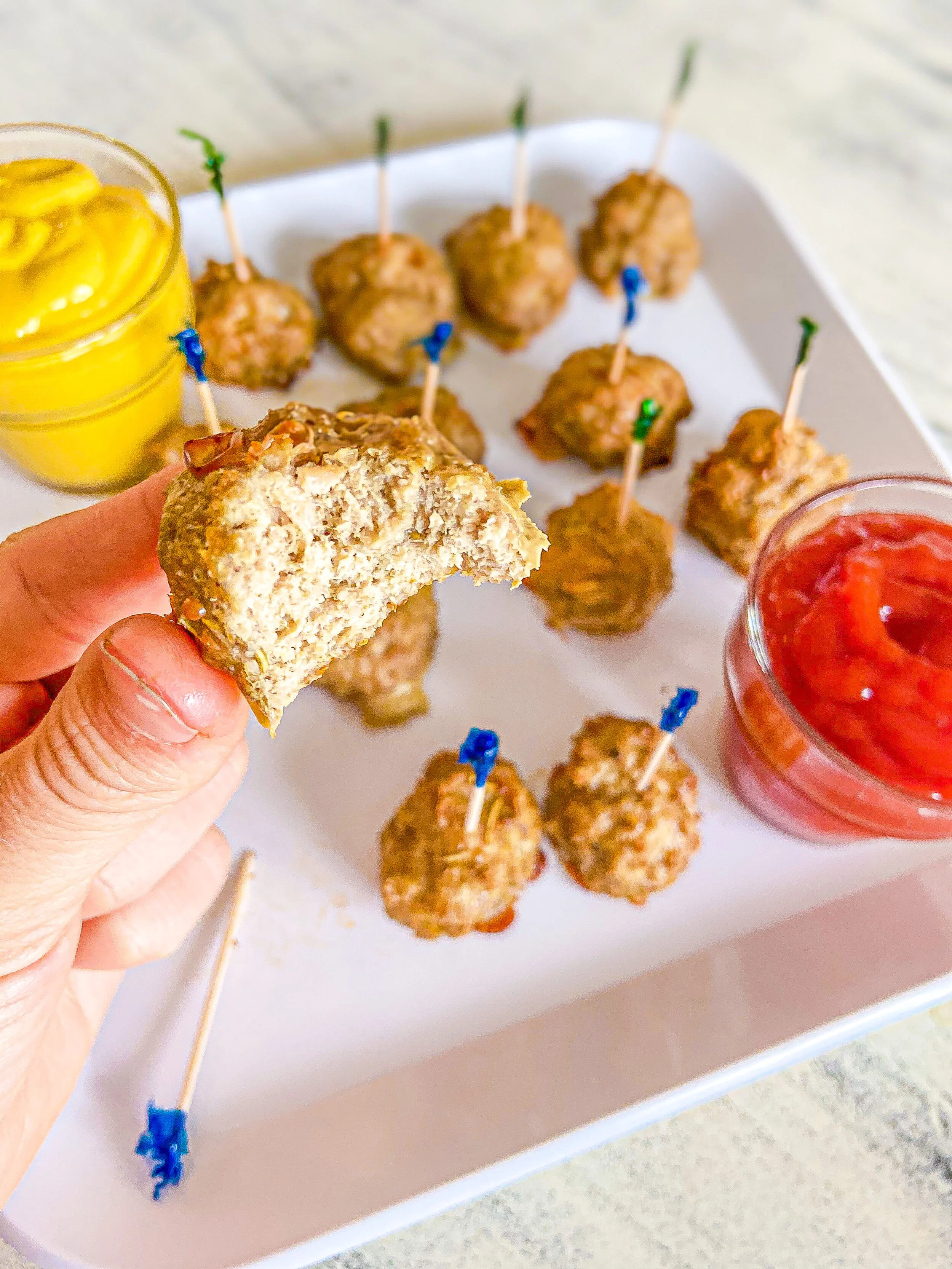Somethings I love about meatballs are their versatility and how they can be paired with just about any dipping sauces. This makes them the perfect game day appetizer and general comfort food. You and your kids won’t be able to take your hands off of these. Each ball has a garlic + rosemary flavor, with a juicy bite. Mix in with some pasta or grab some of my whole 30 ranch, and you’ve got a quick, whole meal!