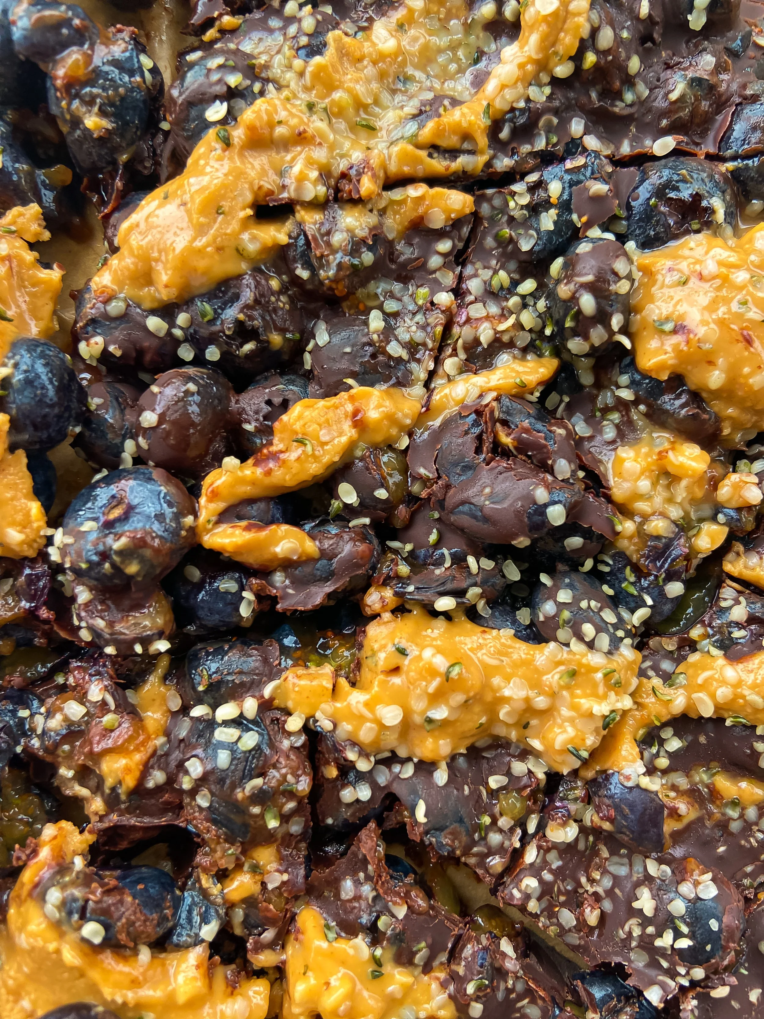 As easy as can be! This bark has everything you need for a go-to snack, and nothing you don’t! There are no added sugars, but the sweetness of fresh, juicy blueberries and rich, decadent chocolate fill in all the gaps of what you might be craving. You can even make a miniature batch of this bark to have the day-of, or prep a full pan for when the craving hits.