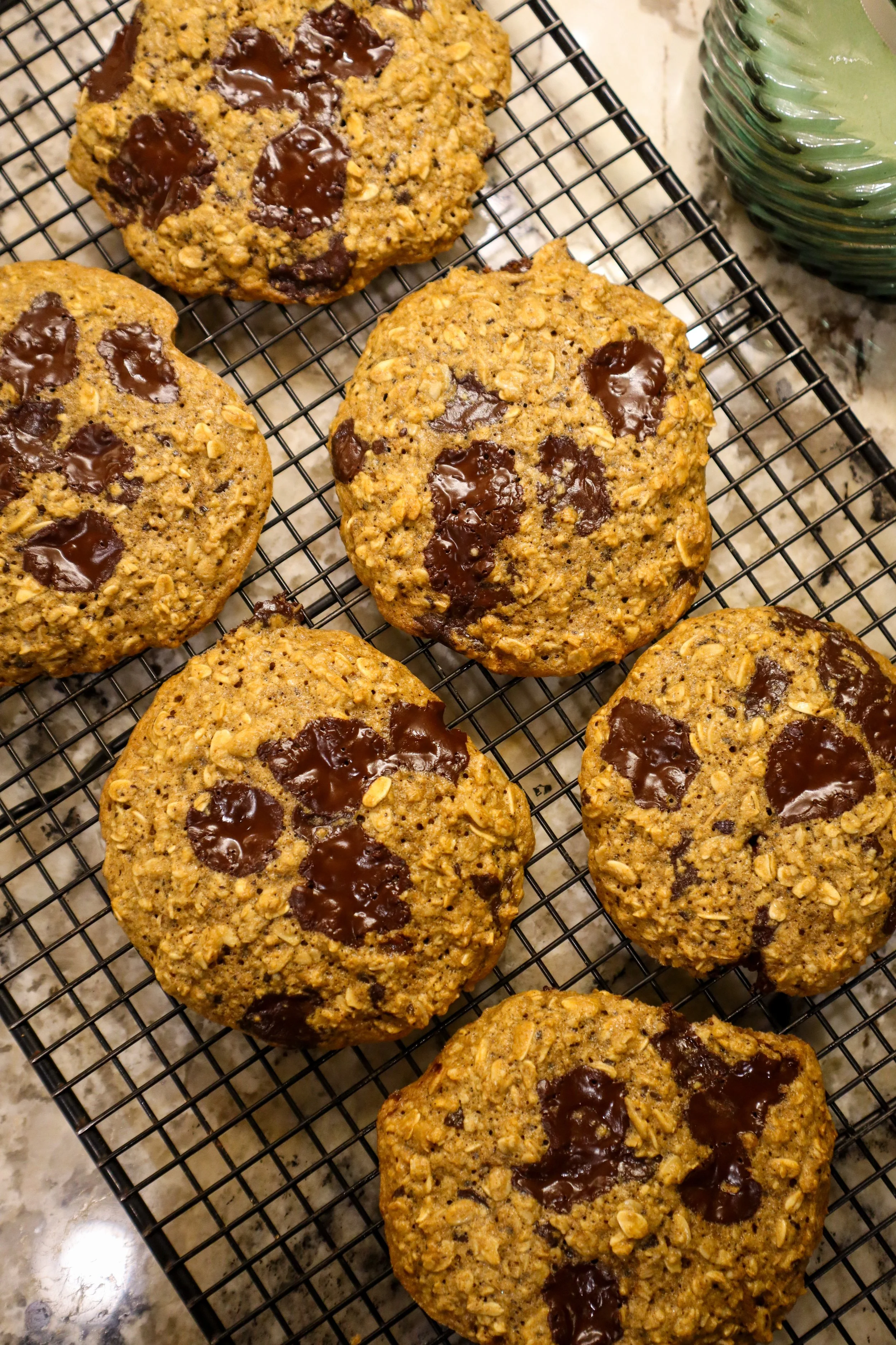 Nothing mimics the coziness of cooler months quite like an oatmeal chocolate chip cookie. Inspired by my Oatmeal Chocolate Chip Banana Cookies, these are a more classic spin on the iconic, not-too-sweet treat. Made with minimal ingredients, these are so easy to effortlessly whip up when the craving hits. They bake to become golden around the edges and develop an ideal blend of soft-chewy textures. Gluten, dairy, and refined-sugar free for everyone to enjoy (or for you to enjoy solo on repeat!).
