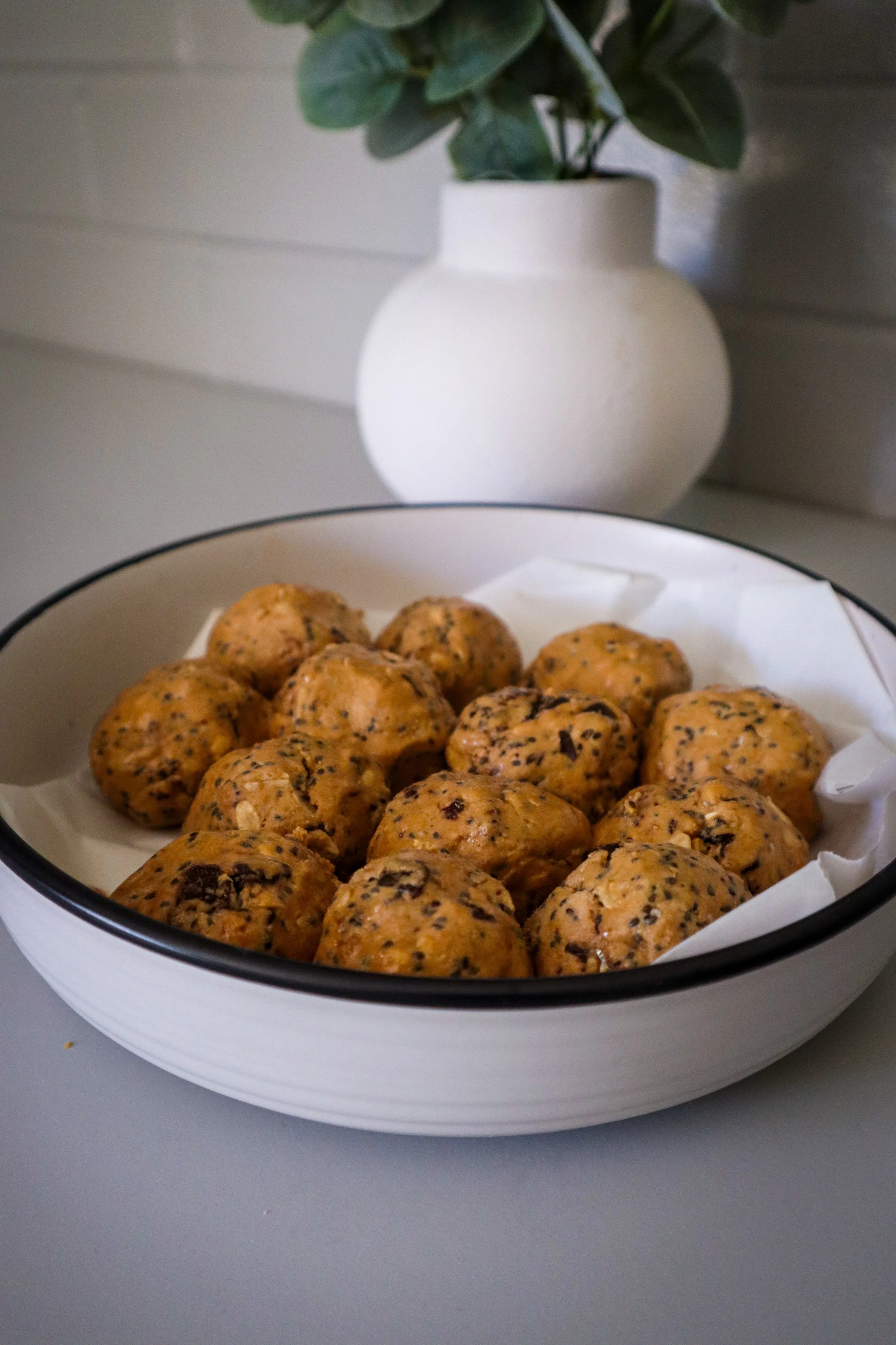 Roll the batter into about one dozen balls. Store in the fridge for at least 10 minutes for them to firm up.