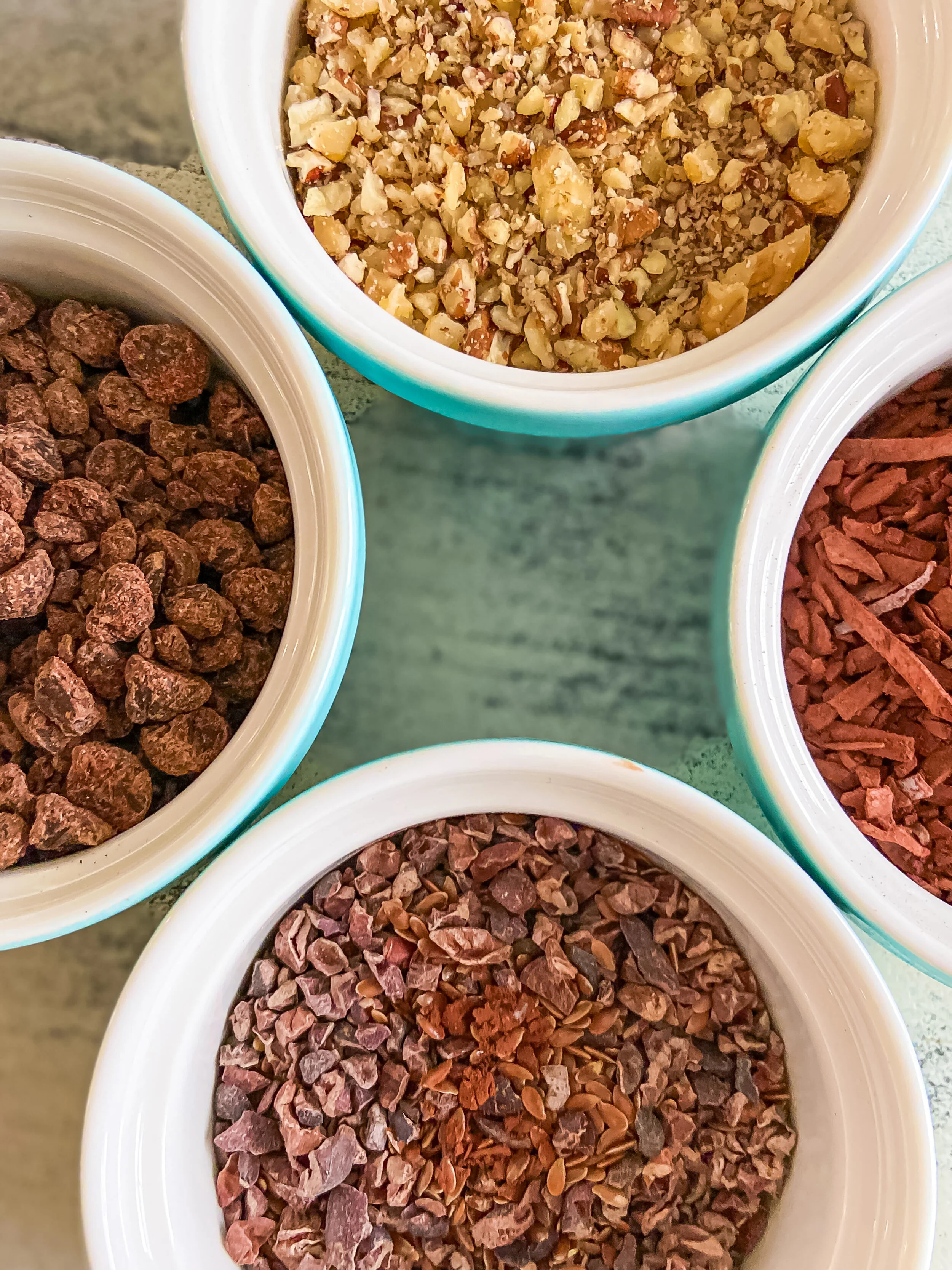 Lightly chop each group of toppings, then transfer to ramekins or other small dishes. Set them aside.