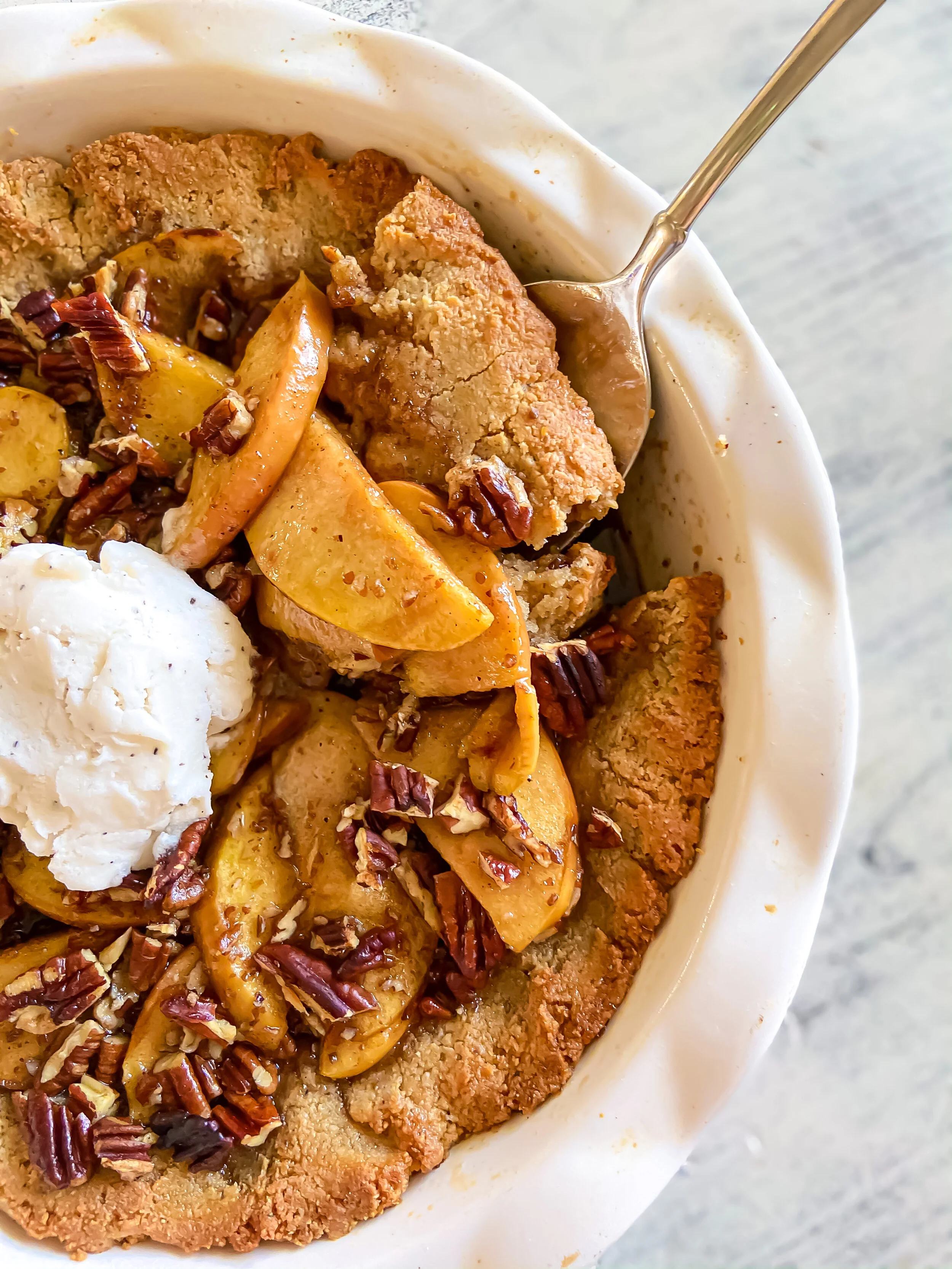 If apple pie isn’t your thing, feel free to swap out the fruit for my peach cobbler skillet or simply any fruit you prefer!